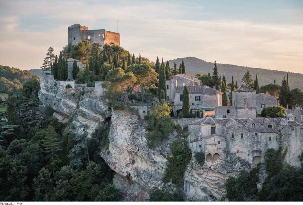 Les vestiges du château, les ruelles en pierre et la vue panoramique créent un décor presque irréel. Les touristes se ruent dans ce petit coin de provence pour admirer le château qui surplombe le village. Et dont les ruines se détachent dans le ciel provençal.