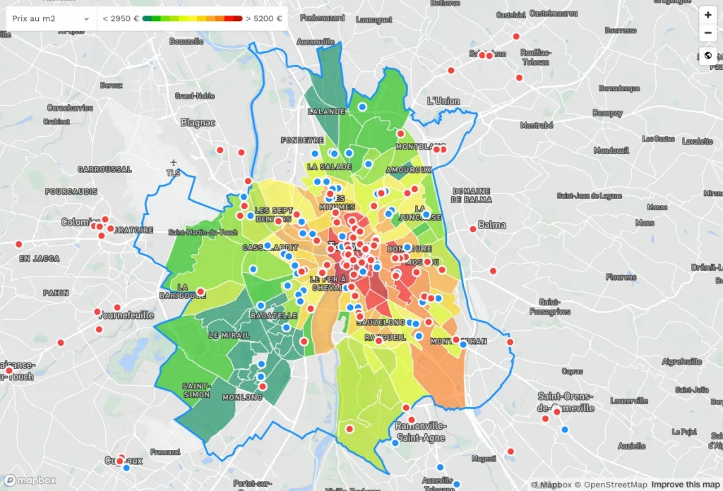- Borderouge et Croix-Daurade se distinguent par leurs prix plus abordables, autour de 3 200 €/m², tout en bénéficiant d’infrastructures récentes.